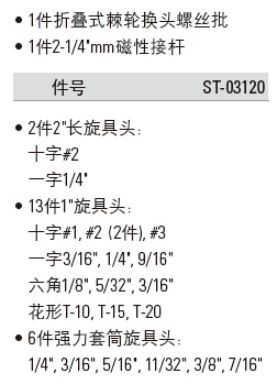 STANLEY史丹利工具ST-03120 23件棘輪螺絲批緊固套裝參數(shù):