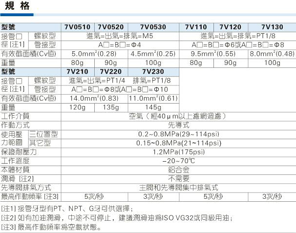 AirTAC亞德客7V系列電磁閥參數(shù):