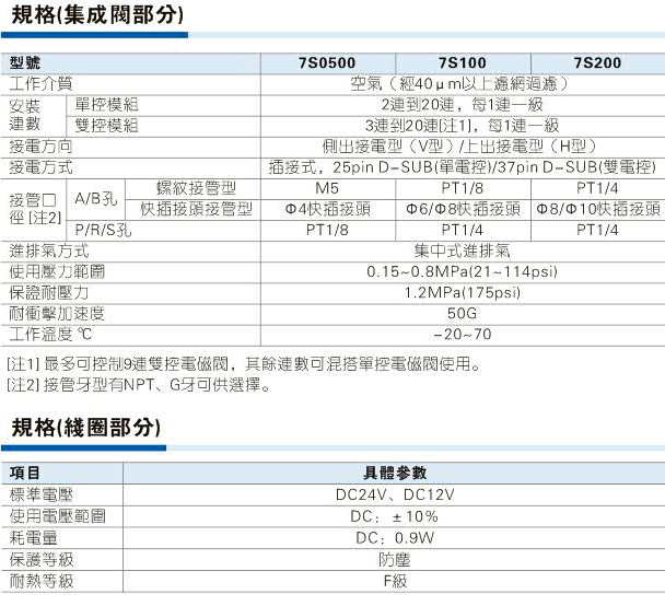 AirTAC亞德客7S系列電磁閥參數(shù):