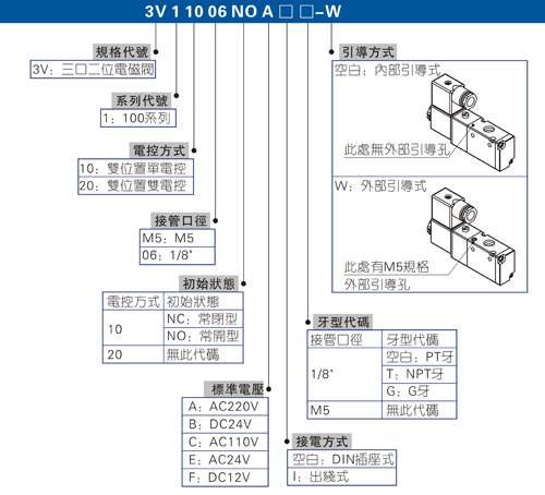 AirTAC亞德客3V100系列電磁閥: