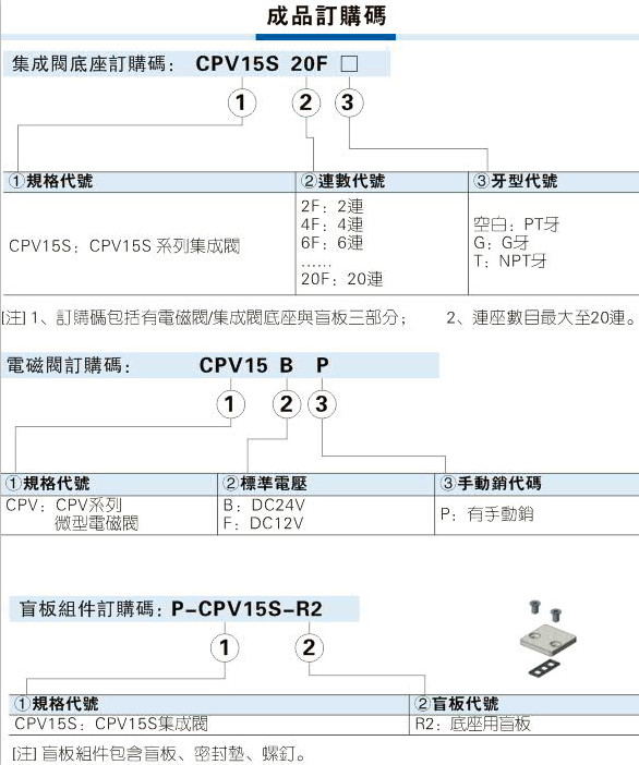 AirTAC亞德客CPV15S系列集成閥 底座、電磁閥及盲板: