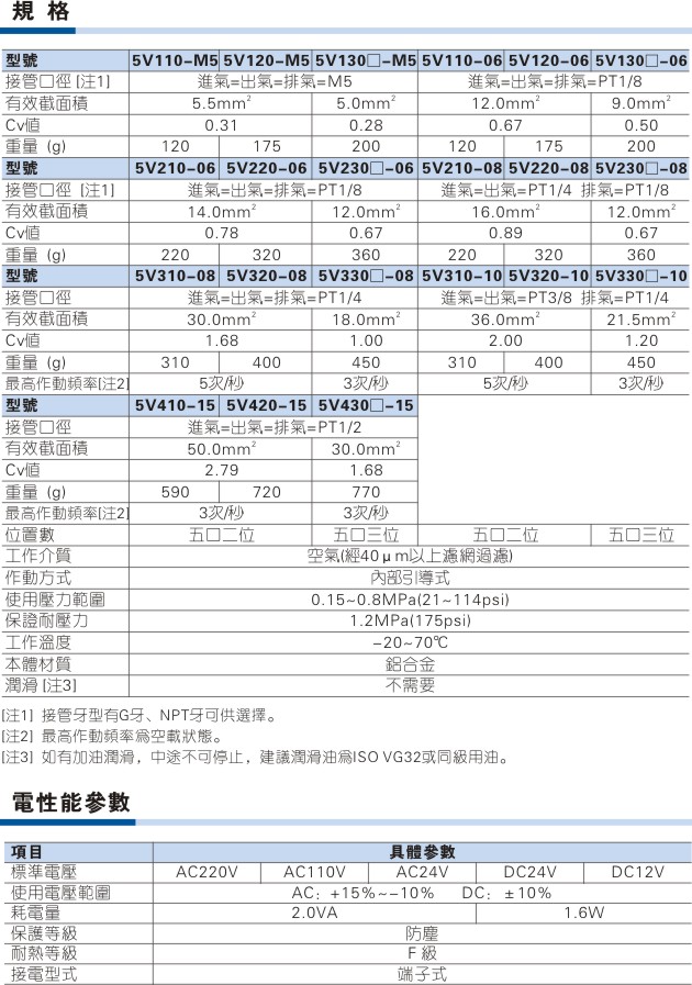 4、三位置電磁閥有三種中央功能可供選擇;雙頭二位置電磁閥具有記憶功能;