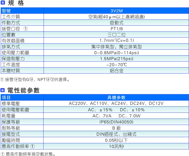 AirTAC亞德客3V2M參數(shù):