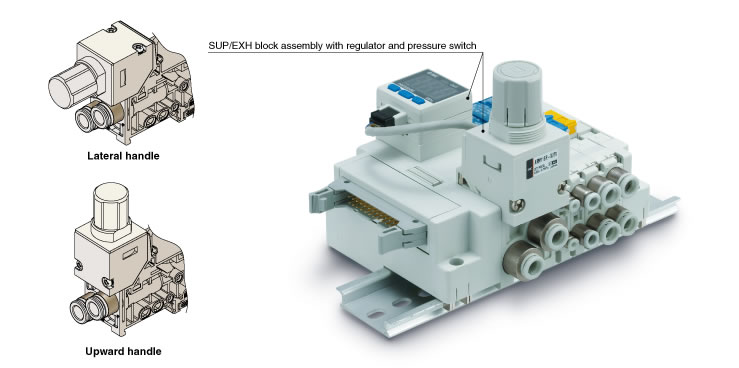 SUP/EXH block assembly with regulator and pressure switch