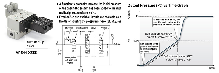 帶緩慢啟動功能的 雙殘壓排氣閥 VP544-X555 |
