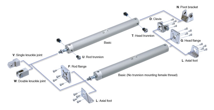 ■Direct mount, non-rotating rod type (CG1KR-Z) is added.Not necessary to order a bracket for the applicable cylinder separately