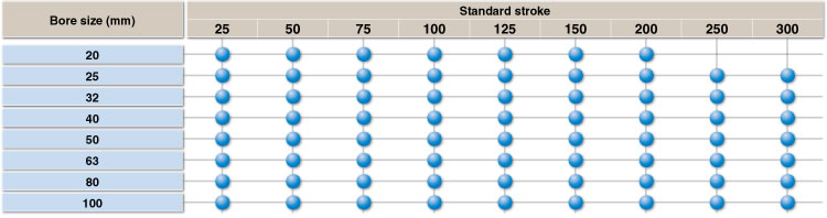 | 型號 | 系列 | 動作方式 | 缸筒內徑(mm) |