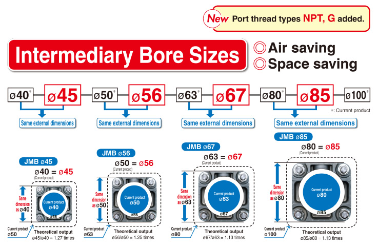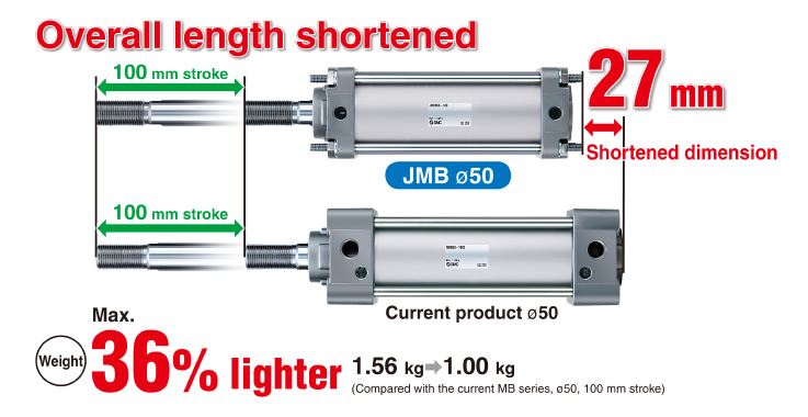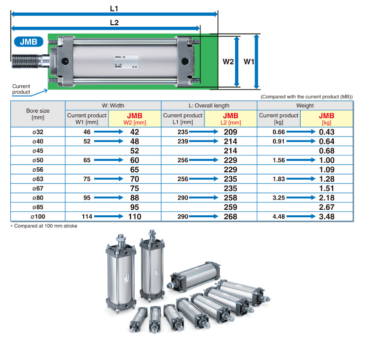(Compared with the current MB series, ?50, 100 mm stroke)