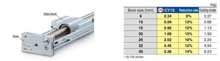 Weight is reduced with the redesign of the slide block and reducing the thickness of the plate.