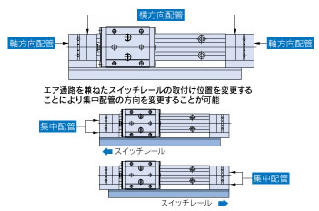 橫方向、軸方向さらに軸方向の集中配管の選択が可能