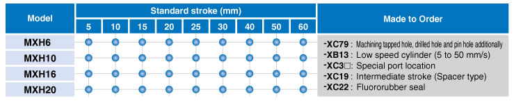 | 標(biāo)準(zhǔn)型 | MXH | 雙作用 | 6,10,16,20 |