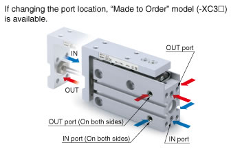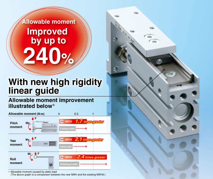 Dimensions including workpiece mounting dimensions and cylinder mounting dimensions are the same as the existing model.