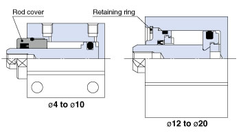 Seals can be replaced easily by just removing the rod cover (?4 to ?10) or retaining ring (?12 to ?20).