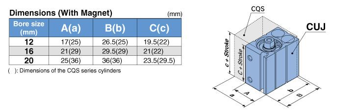 (Compared with the CQS series cylinders, double acting, with magnet)