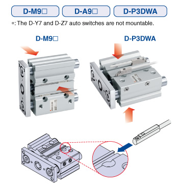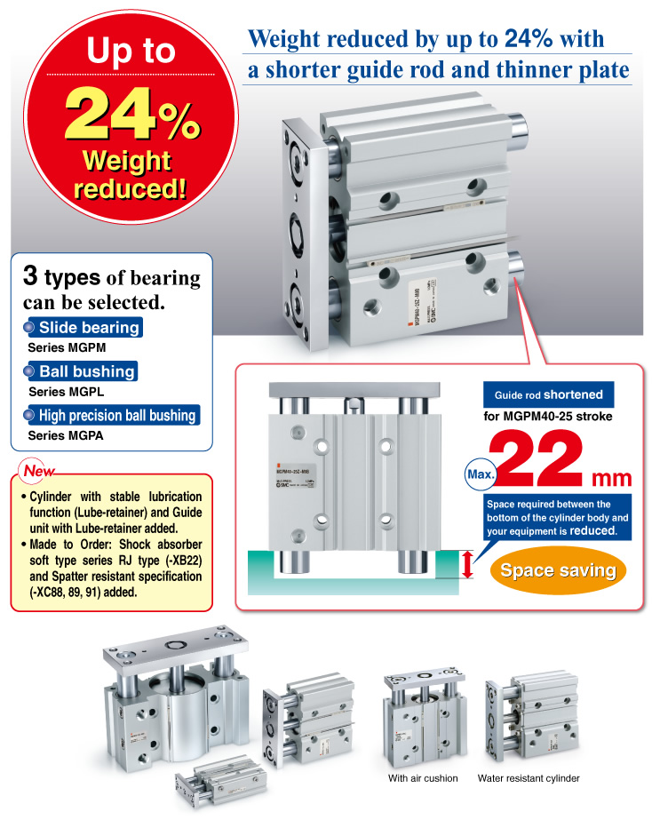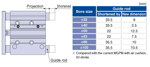 ●Mounting dimensions are equivalent to the current MGP series with air cushion.