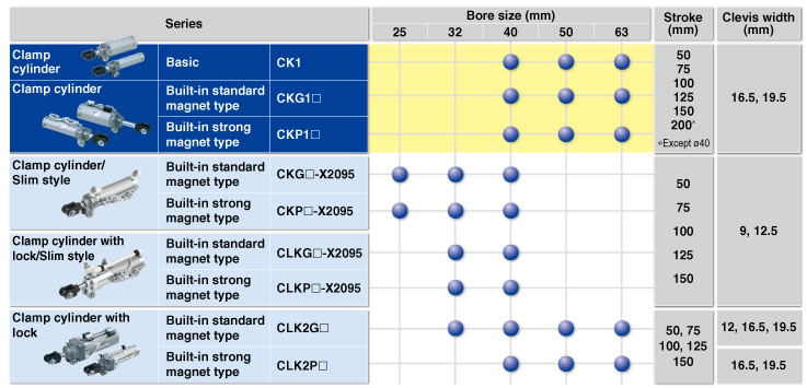 CKG1 | 雙作用 | 16.5,19.5 | 40,50,63 |