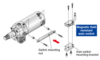 Possible to mount magnetic field resistant auto switch using the mounting rod