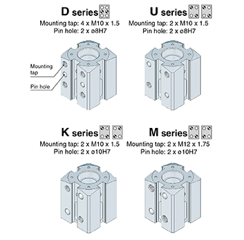 | 種類 | 系列 | 導(dǎo)向槽形狀 | 缸筒內(nèi)徑 (mm) |
