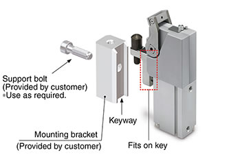 The work clamping base can be used as a parallel key to prevent rotation. Using a bolt to support the mounting bracket is recommended.