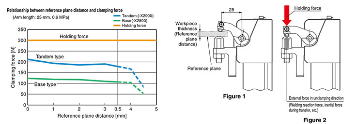 Outputs constant clamping force for workpiece thickness up to 3.5 mm.*Figure 1