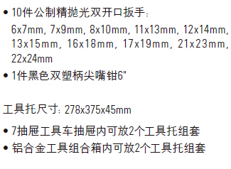 STANLEY史丹利工具LT-019-23 11件套雙開(kāi)口扳手工具托 產(chǎn)品介紹:
