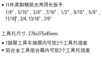 STANLEY史丹利工具LT-028-23 11件套英制兩用長扳手工具托產(chǎn)品種類齊全,周到設(shè)計,滿足專業(yè)人員在作業(yè)環(huán)境中的使用需求。
