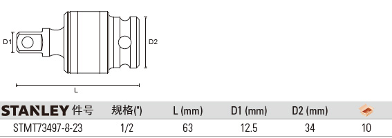 STANLEY史丹利工具STMT73497-8-23 12.5MM系列萬(wàn)向接頭 產(chǎn)品介紹: