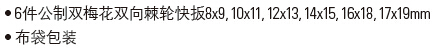 STANLEY史丹利工具TK920-23C 6件公制雙梅花雙向棘輪快扳組套 產(chǎn)品介紹: