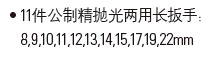 STANLEY史丹利工具93-611-22 11件套公制精拋光兩用長扳手 產(chǎn)品介紹: