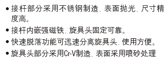 STANLEY史丹利工具63-190-23 6.3MM系列快速脫落磁性接桿表面采用噴砂處理,保證頭部尺寸的精準.特殊熱處理工藝,扭矩比普通產(chǎn)品強度更高,更耐磨,使用壽命持久。