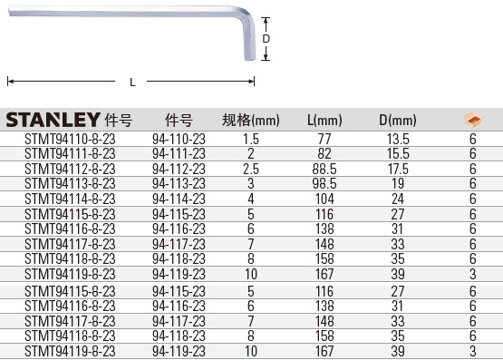 STANLEY史丹利工具 公制長內(nèi)六角扳手 產(chǎn)品介紹: