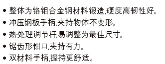 STANLEY史丹利工具84-378-23 加硬弧齒大力鉗采用優(yōu)質(zhì)高碳鋼鍛造,加硬鉗口處理,根據(jù)人體工學(xué)設(shè)計(jì)的雙材料手柄,使用更舒適。