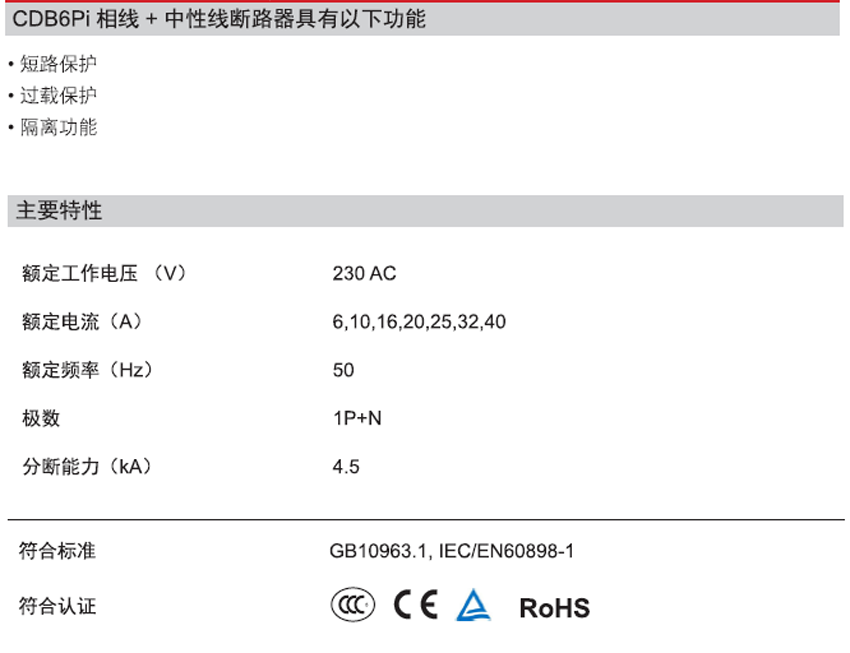 DELIXI德力西CDB6Pi相線+中性線斷路器 產(chǎn)品參數(shù):