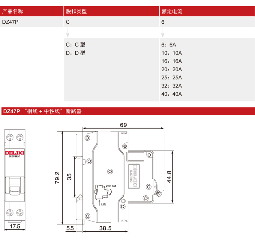 DELIXI德力西DZ47P“相線+中性線”斷路器 產(chǎn)品詳情: