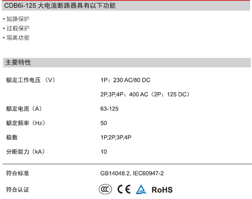 DELIXI德力西CDB6i-125 塑料外殼式斷路器 產(chǎn)品詳情: