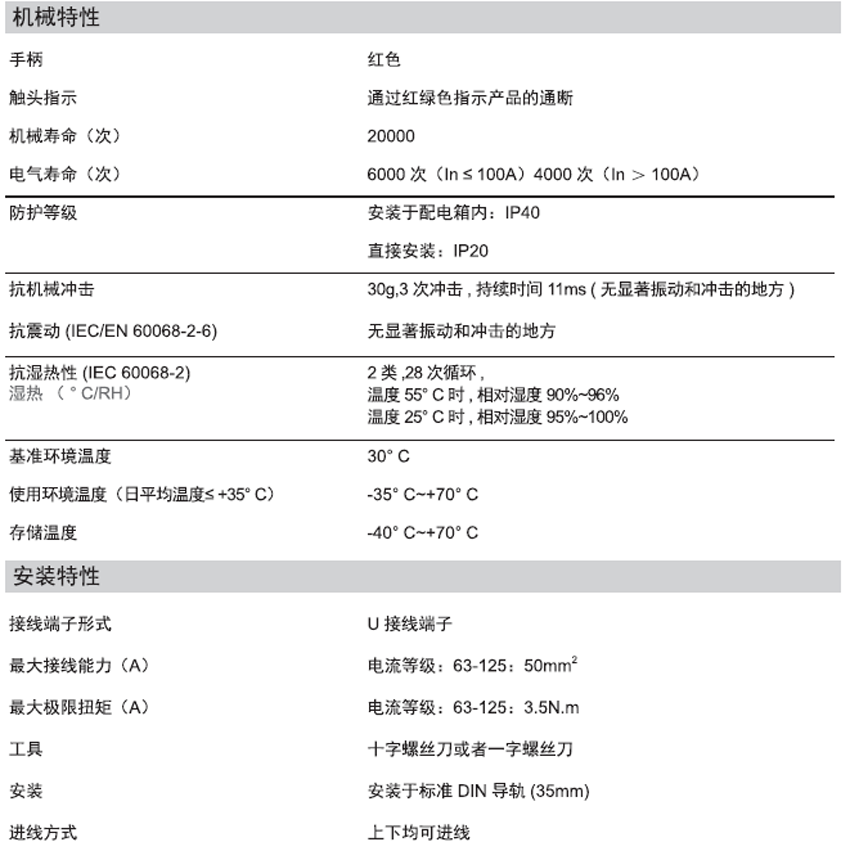DELIXI德力西CDB6i-125 塑料外殼式斷路器 產(chǎn)品參數(shù):