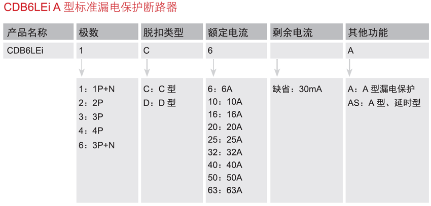 DELIXI德力西CDB6LEi小型剩余電流動作斷路器 產(chǎn)品參數(shù):