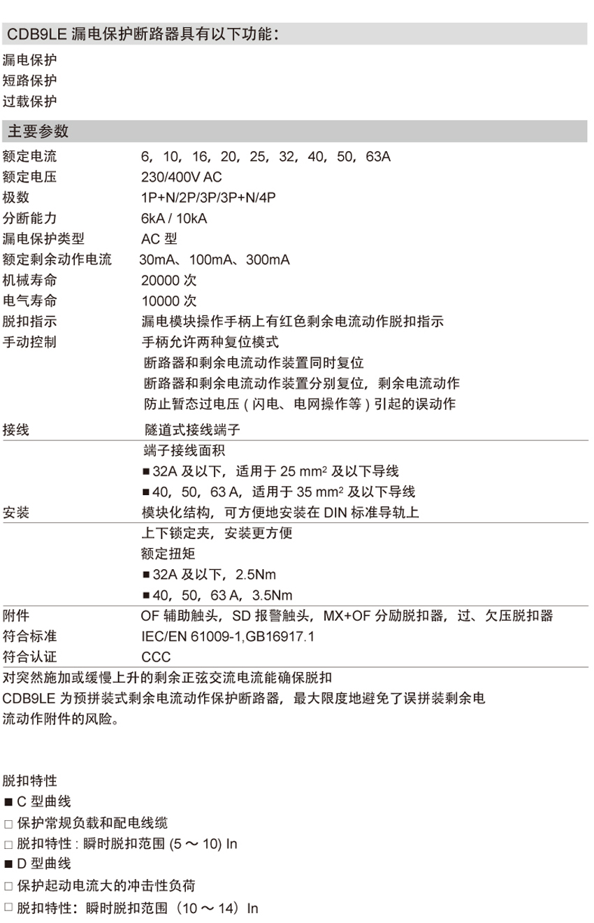DELIXI德力西CDB9LE小型漏電保護斷路器 產(chǎn)品參數(shù):