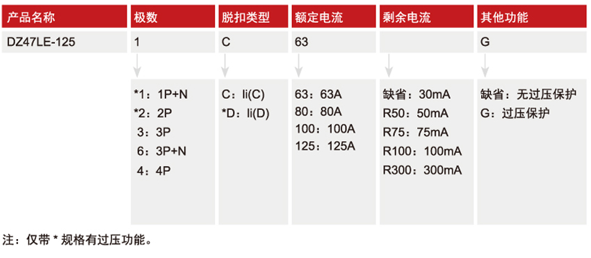 DELIXI德力西DZ47LE-125大電流漏電斷路器參數(shù):