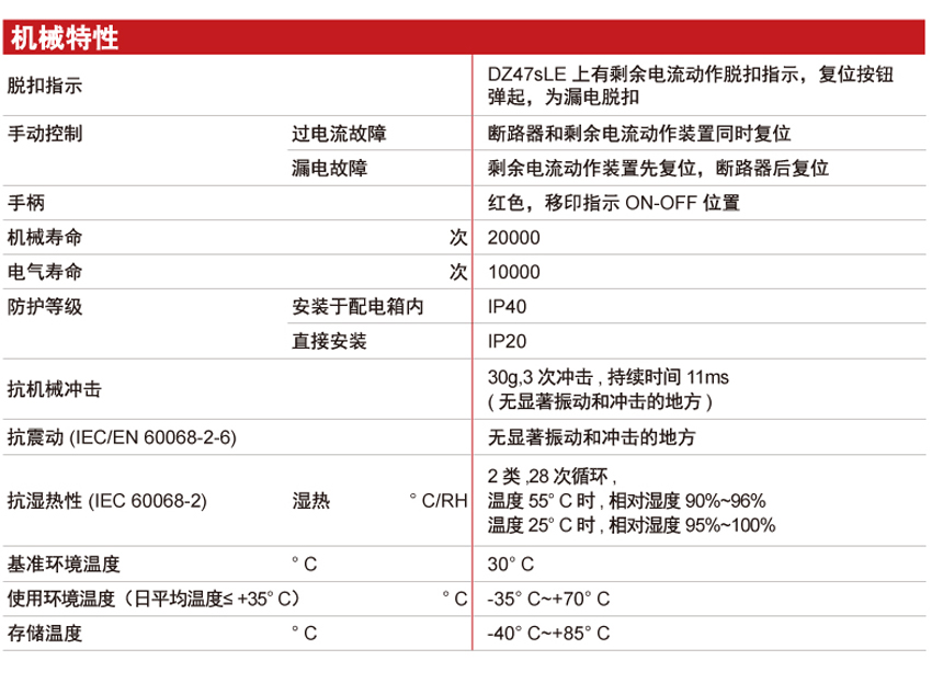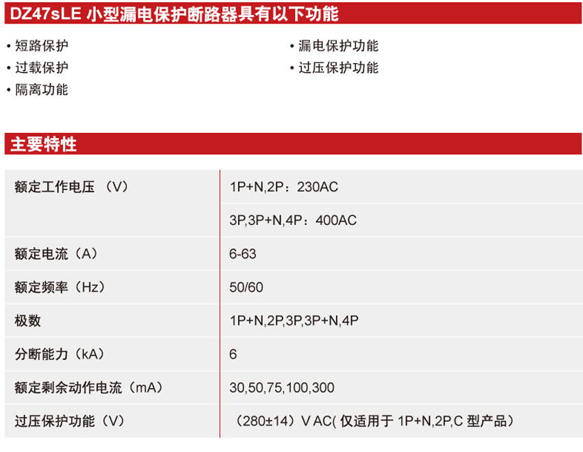 DELIXI德力西DZ47sLE小型漏電保護斷路器 產(chǎn)品參數(shù):