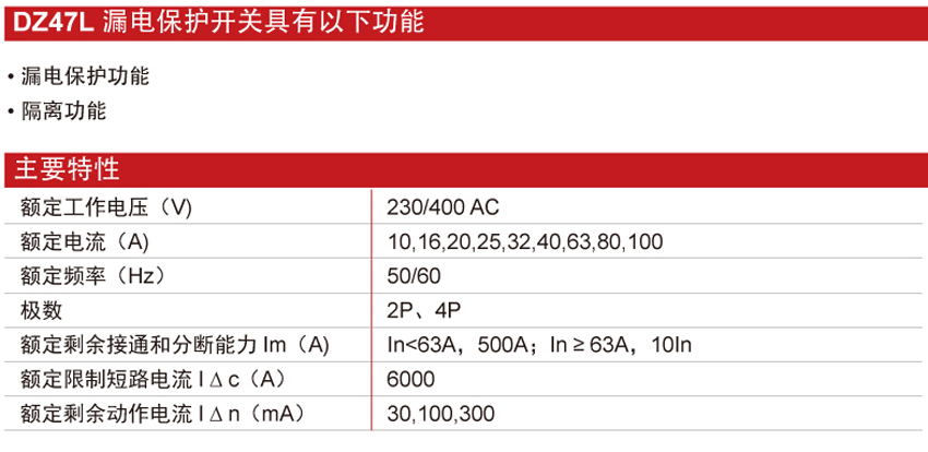 DELIXI德力西DZ47L漏電保護(hù)開(kāi)關(guān) 產(chǎn)品參數(shù):
