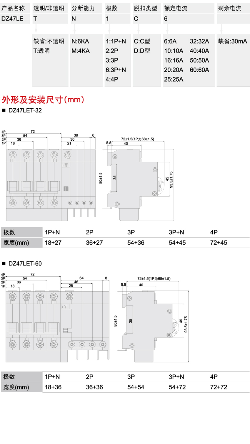 DELIXI德力西DZ47LET透明漏電保護斷路器 產(chǎn)品詳情: