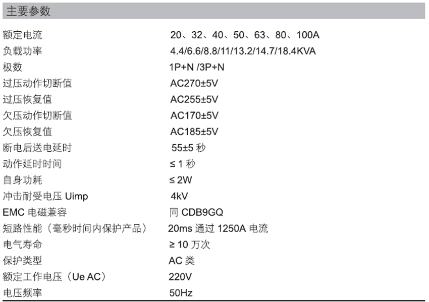 DELIXI德力西CDGQF自復(fù)式過(guò)欠壓保護(hù)器 產(chǎn)品參數(shù):