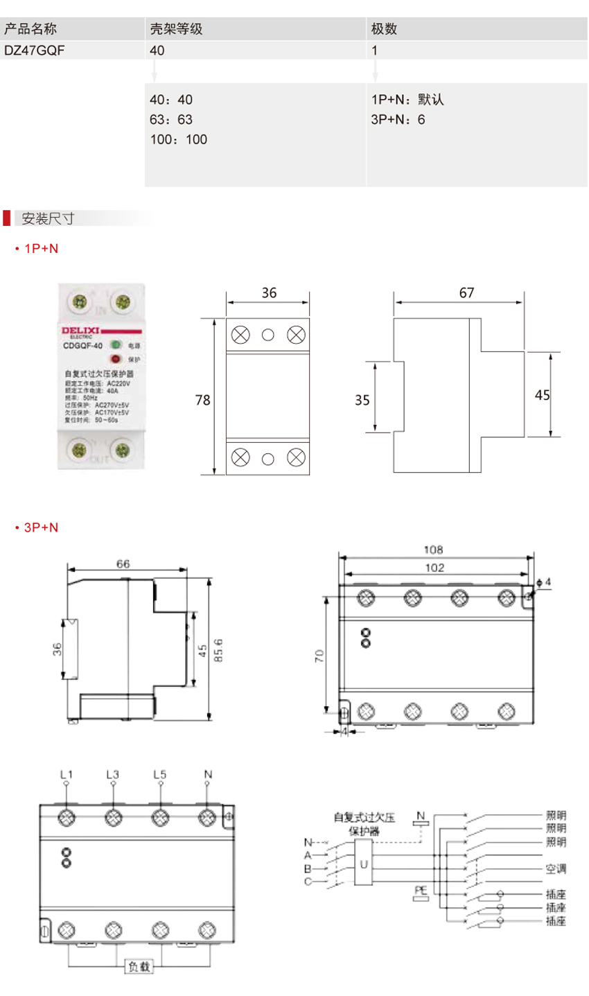 DELIXI德力西DZ47GQF自復(fù)式過欠壓保護器 產(chǎn)品參數(shù):