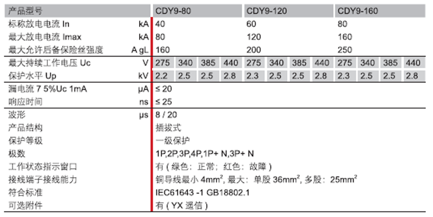 DELIXI德力西CDY9 電源類浪涌保護(hù)器 產(chǎn)品參數(shù):