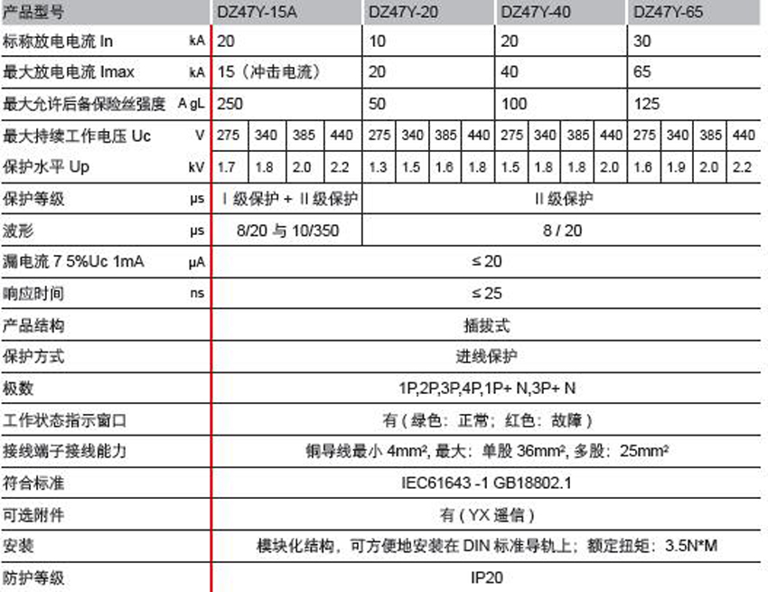 DELIXI德力西DZ47Y 電涌保護(hù)器 產(chǎn)品參數(shù):