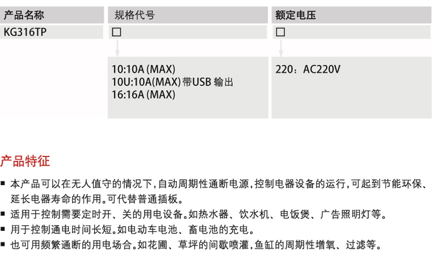 DELIXI德力西KG316TP時(shí)控插座 產(chǎn)品參數(shù):