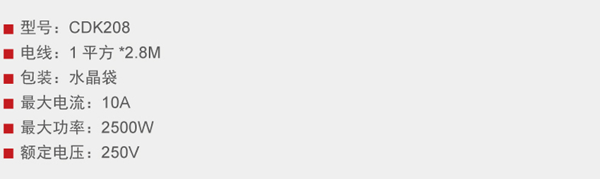 DELIXI德力西CDK 208 延長線插座(新國標) 產(chǎn)品參數(shù):
