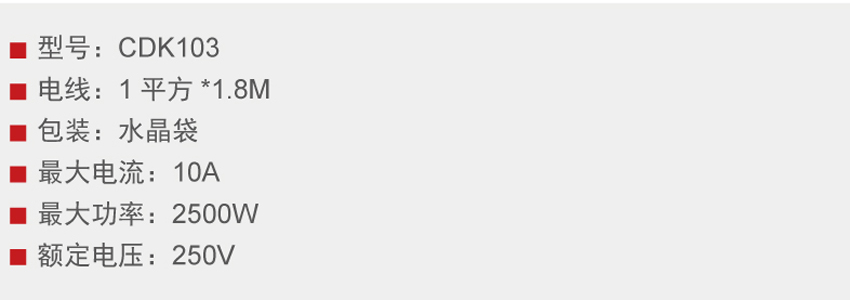 DELIXI德力西CDK 103 延長線插座(新國標(biāo)) 產(chǎn)品參數(shù):