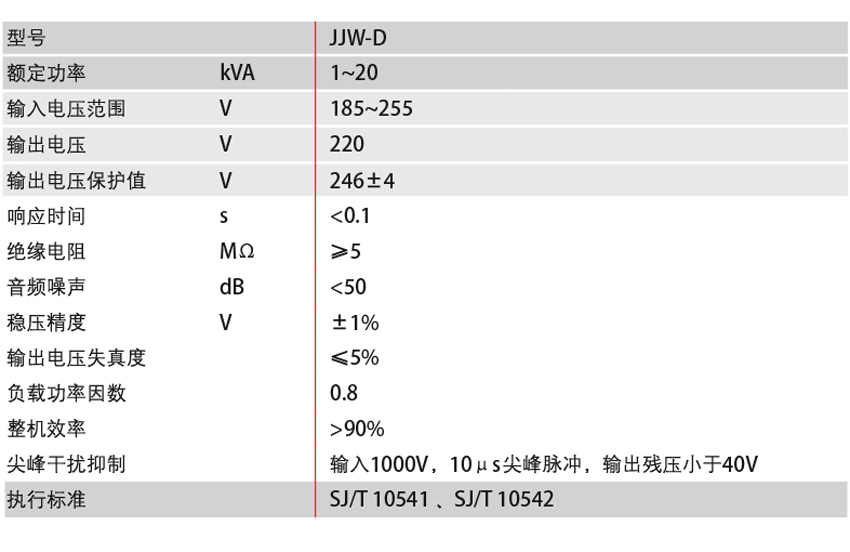 DELIXI德力西JJW-D 系列精密凈化型交流穩(wěn)壓器 產(chǎn)品參數(shù):